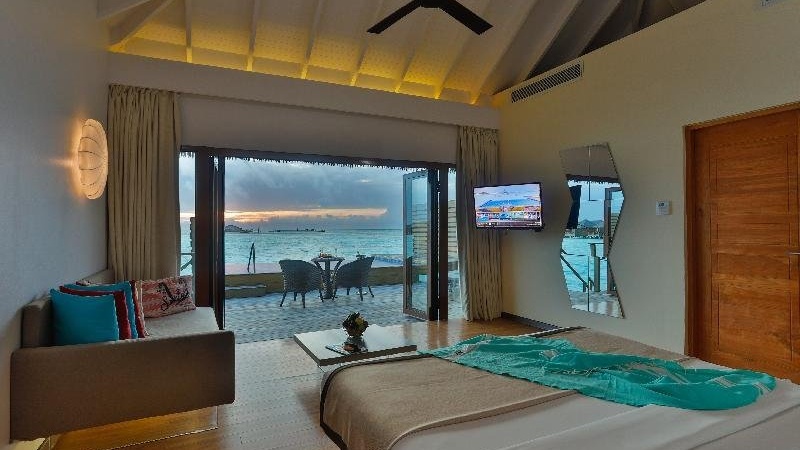 You & Me Maldives 5* (атолл Раа) — романтичный отель только для взрослых (16+). Главная «звезда» — подводный ресторан H2O, где шеф-повар имеет 4 звезды Мишлен. Отель создан для пар и медового месяца: тишина, уединение, виллы над водой с прозрачными полами. Трансфер на гидросамолёте 45 минут.
