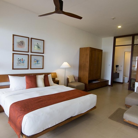 48 Deluxe Room - номера,расположенные на первом и втором этажах,с балконом,спальней с квоватью king-size или двумя отдельными кроватями,с ванной комнатой с тропическим душем и с видом на океан. Максимально размещение 2 взрослых и 1 ребёнок или 3 взрослых.