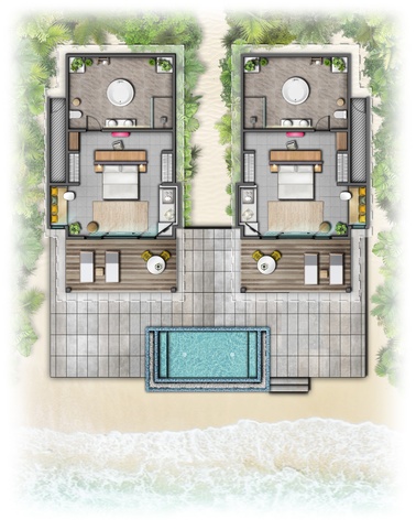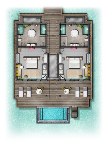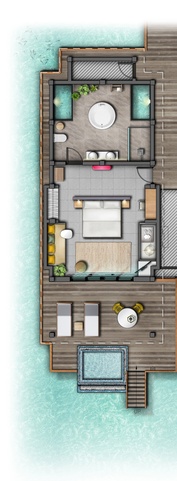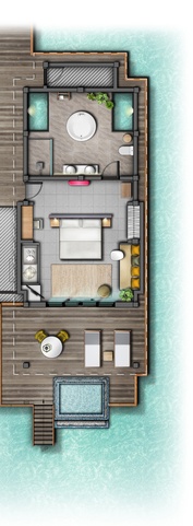 В отеле 115 береговых и водных вилл с персональным бассейном. Во всех бунгало открывается чудесный вид на тропические сады, белоснежный пляж или воды Индийского океана.