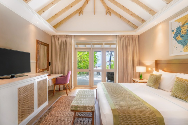 112 простых, но элегантных номеров оформлены в светлых тонах Мальдивских островов и «сливаются» с тропической природой Эллайду. К выбору гостей – номера в общем блоке, береговые бунгало в саду или водные виллы с террасой и морской панорамой.