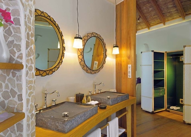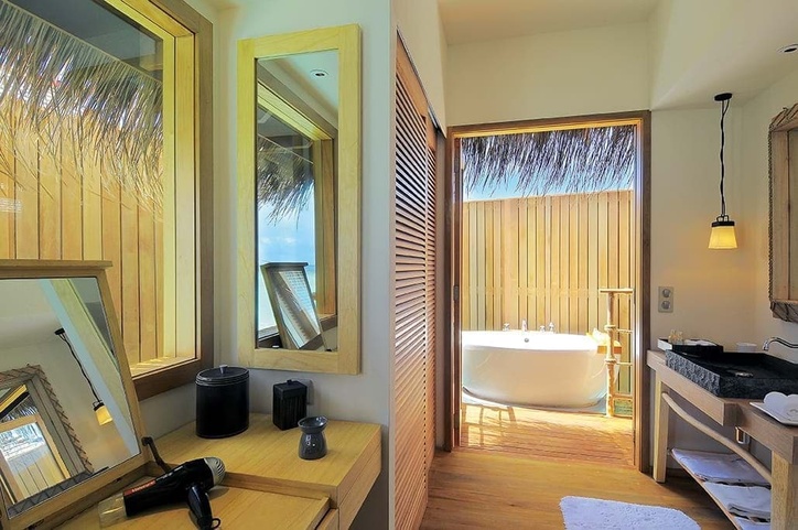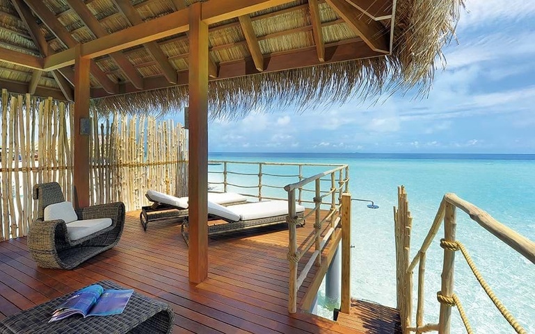 Отель предлагает размещение в прибрежных бунгало и водных виллах с уютной террасой и удобным спуском в лагуну.