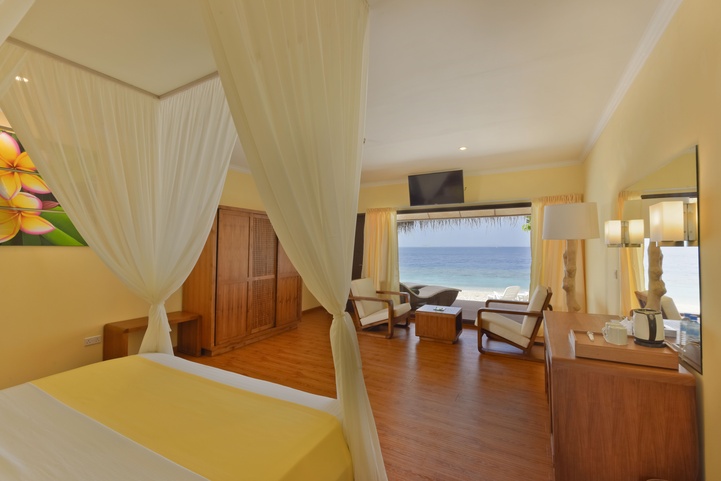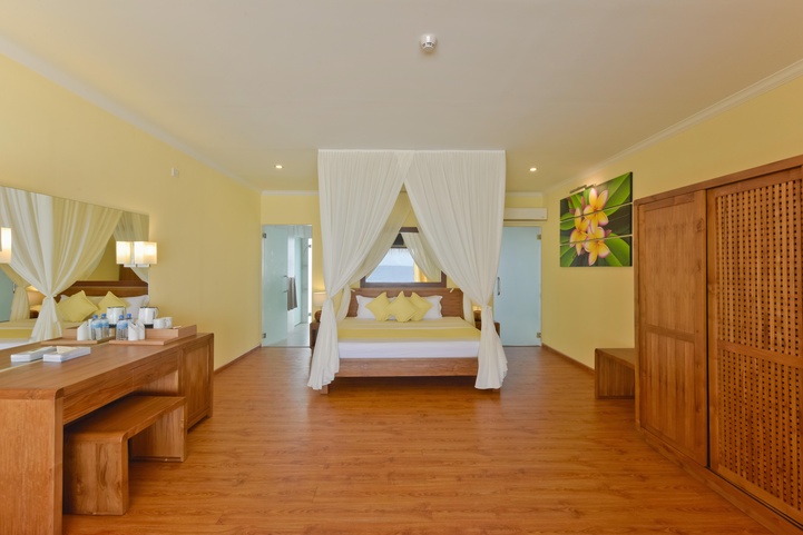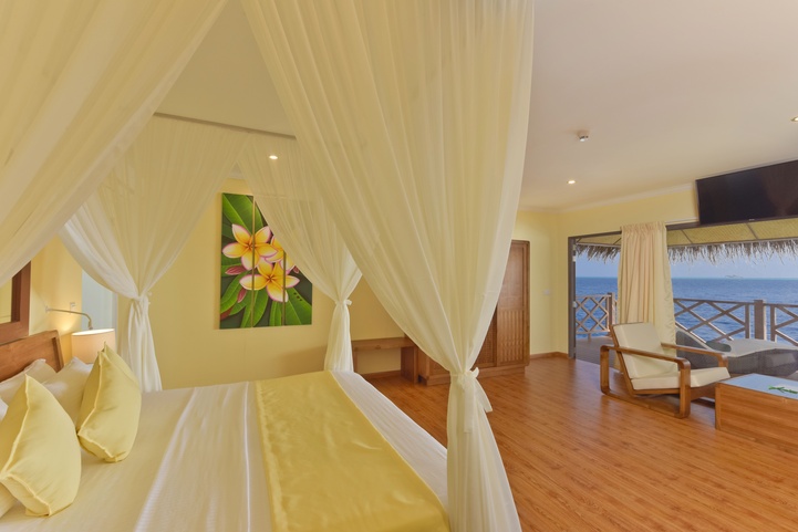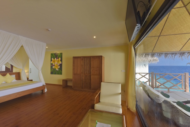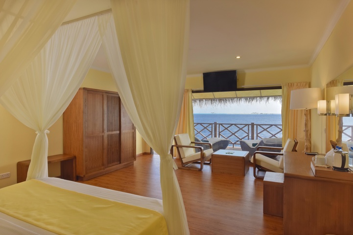К выбору гостей отеля – 90 береговых и водных вилл: береговые виллы с выходом на пляж, в которых первое, что вы будете видеть по утрам, это белоснежные песок и небо перетекающее в лагуну и водные бунгало с террасой и прямым доступом в лагуну.