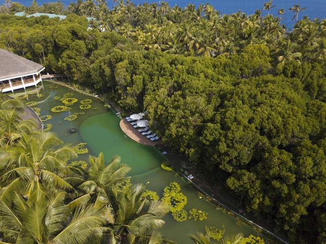 На территории острова находится Пресноводное озеро с обустроенным для гостей биотопным бассейном