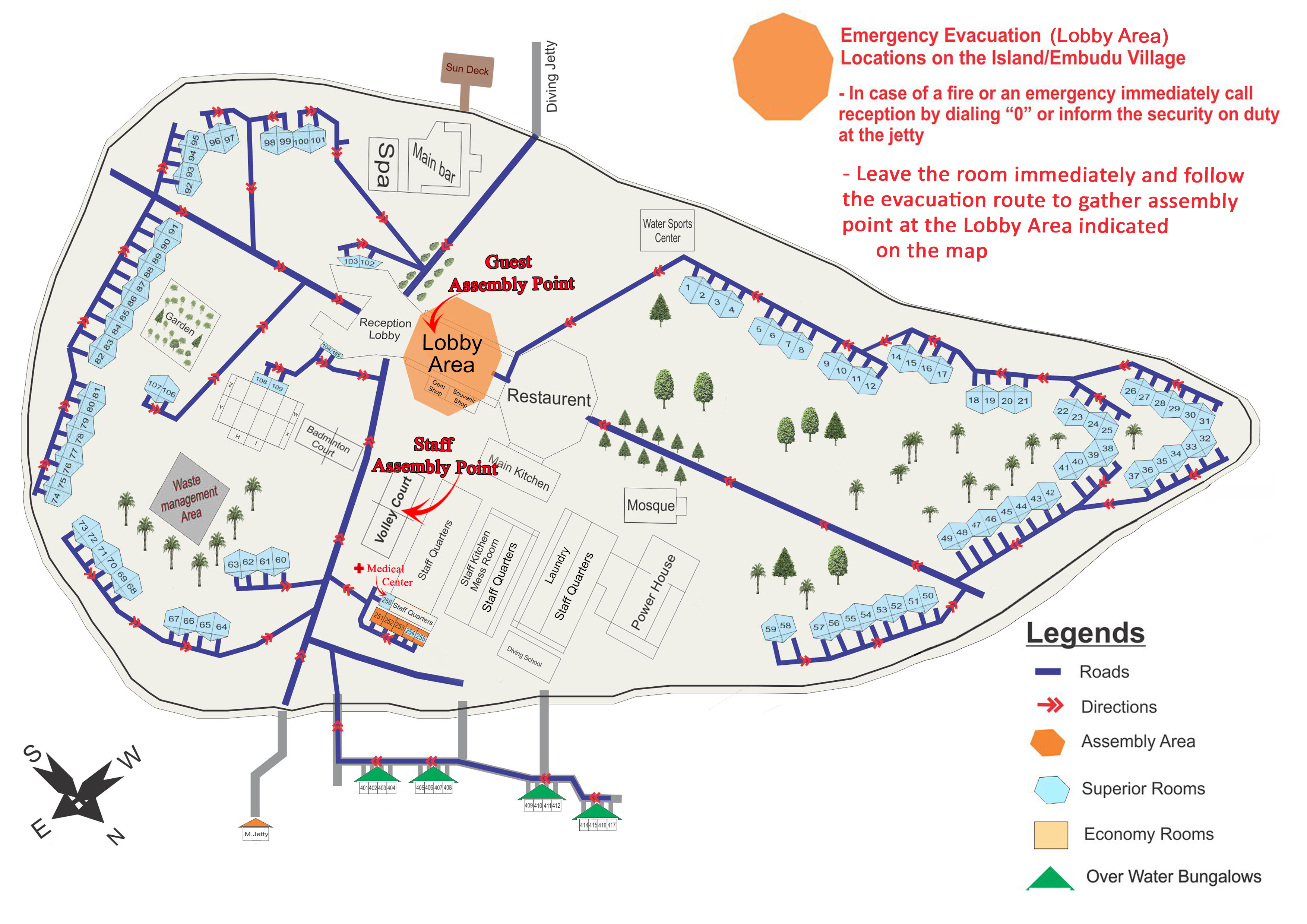 Размещение на курорте предоставляется на береговых виллах, где можно покачаться на гамаке с видом на Индийский океан и водных бунгало со стеклянными панелями на потолке и полу для комфорта и единения с природой.