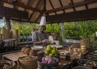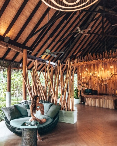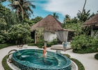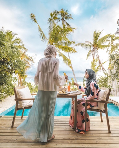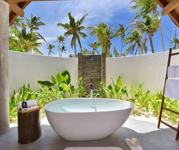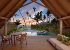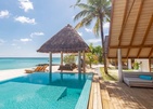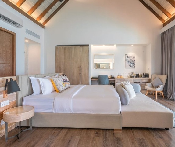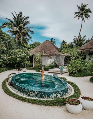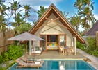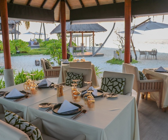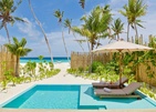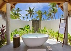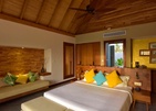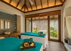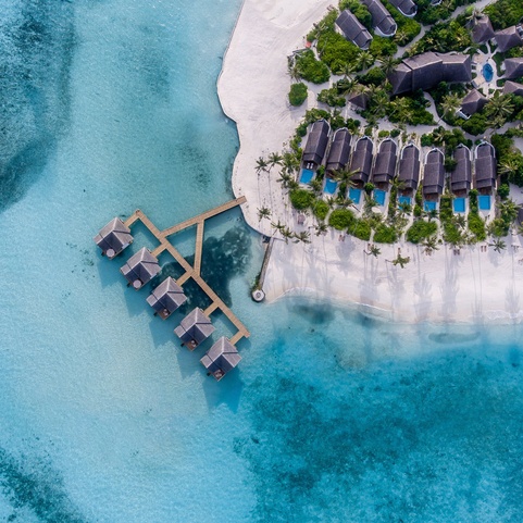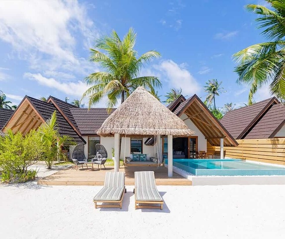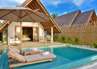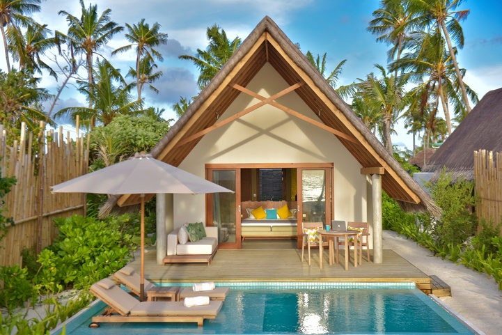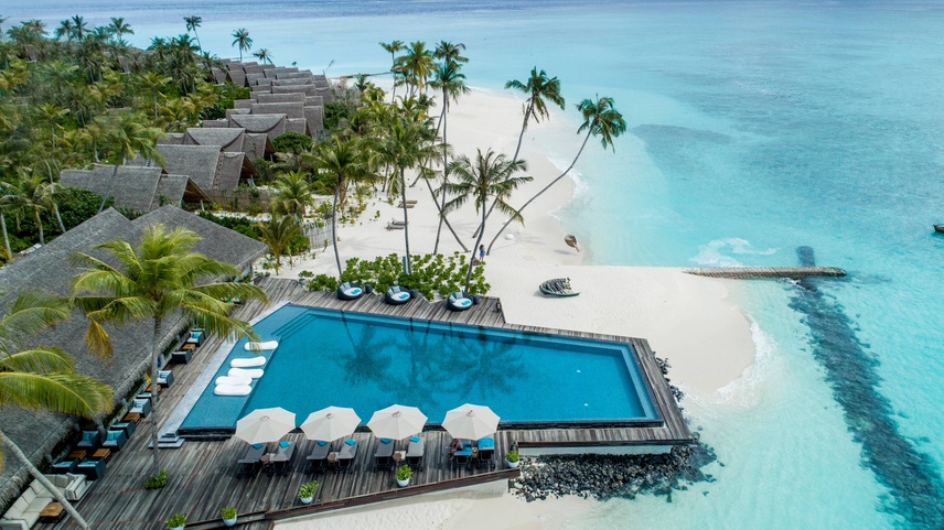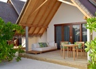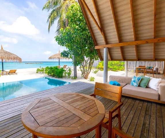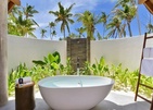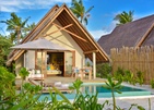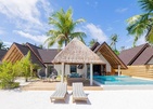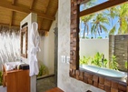 Отель камерный и подойдет тем, кто приезжает на Мальдивы за покоем и уединенностью в тени буйно пышущей тропической природы, белоснежных пляжей и лазурного океана. Всего 49 вилл, оформленных как традиционные мальдивские хижины. Можно выбрать между разными категориями береговых вилл, либо поселиться на воде в вилле на сваях с джакузи.
