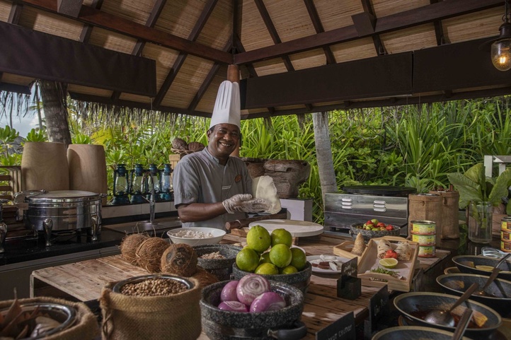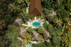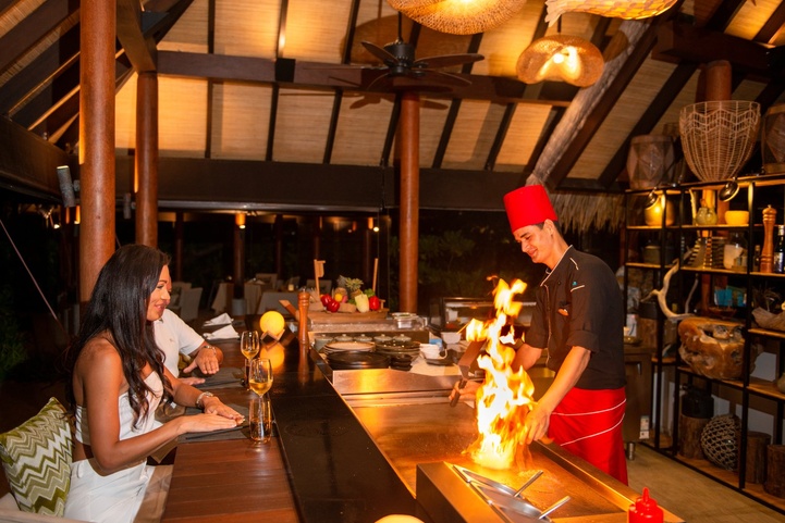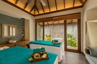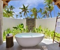Отель камерный и подойдет тем, кто приезжает на Мальдивы за покоем и уединенностью в тени буйно пышущей тропической природы, белоснежных пляжей и лазурного океана. Всего 49 вилл, оформленных как традиционные мальдивские хижины. Можно выбрать между разными категориями береговых вилл, либо поселиться на воде в вилле на сваях с джакузи.