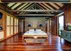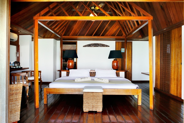В отеле 45 номеров разных категорий, находящиеся в тени тропического сада, на берегу с видом на Индийский океан и водные виллы на сваях в лагуне. Все выполнены из природных материалов и лаконично вписываются в окружающий ландшафт острова.