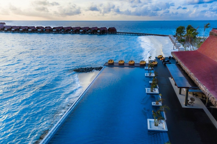 Его главная черта – традиционно-мальдивский стиль, переплетающийся с современным комфортом, поэтому, все виллы выполнены в современном дизайне из природных пород. В отеле 120 вилл разных категорий – практически все с собственным бассейном, а также обеденной зоной и спальней с панорамным видом на Индийский океан.