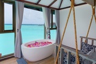 Его главная черта – традиционно-мальдивский стиль, переплетающийся с современным комфортом, поэтому, все виллы выполнены в современном дизайне из природных пород. В отеле 120 вилл разных категорий – практически все с собственным бассейном, а также обеденной зоной и спальней с панорамным видом на Индийский океан.