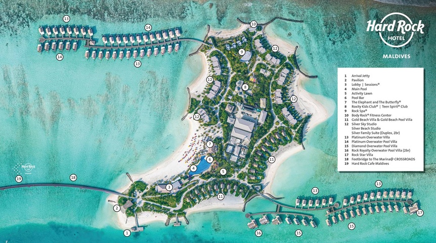 Hard Rock Hotel Maldives – это отель на Мальдивах, входящий в комплекс Crossroads, который помимо него включает в себя еще два отеля и развлекательный «остров» The Marina @ CROSSROADS Maldives.