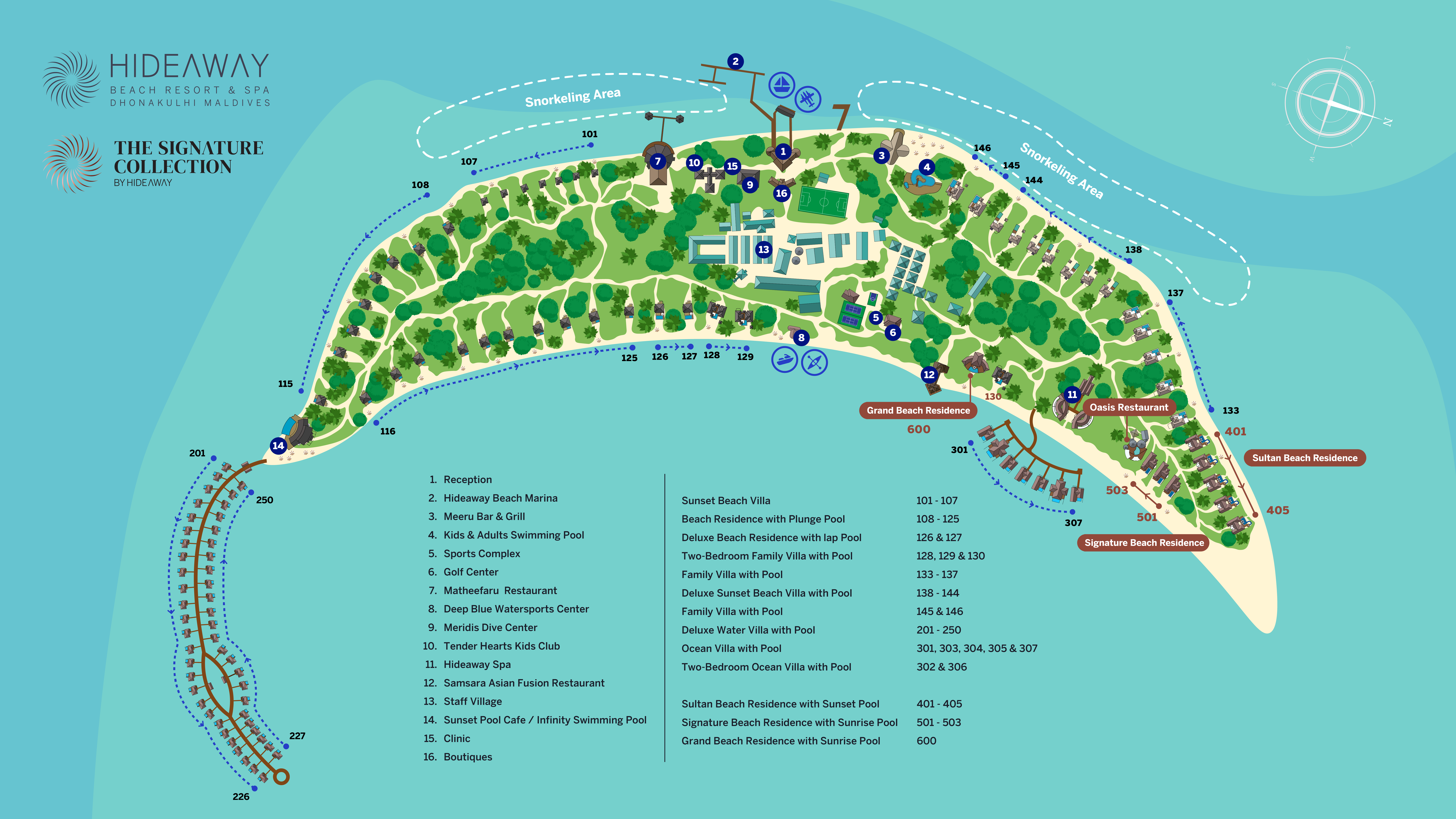 Hideaway Beach Resort & Spa – идеальный отель на Мальдивах с дружных компаний и семей с детьми. Он раскинулся на большом острове, в форме полумесяца, окруженный белоснежными пляжами и лазурной водой Индийского океана с прекрасным домашнем рифом.