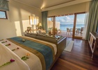 Размещение в отеле предусмотрено в просторных комфортабельных виллах на берегу и на сваях в Индийском океане, практически все категории с персональным бассейном и абсолютно каждый с изумительным видом на бесконечную гладь океана.