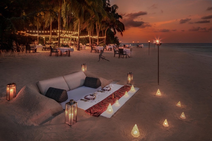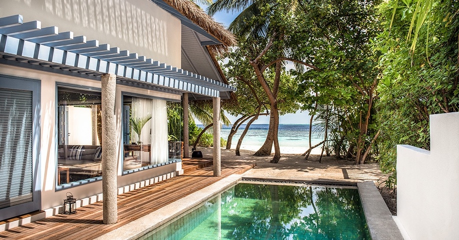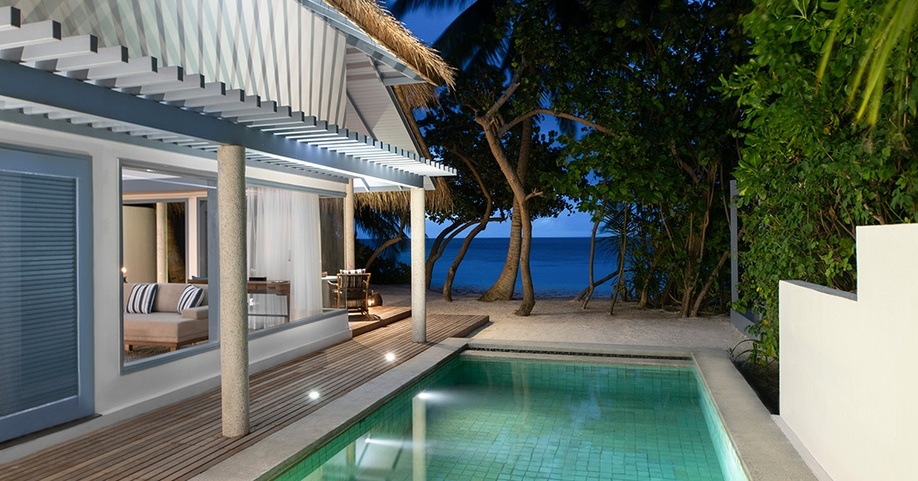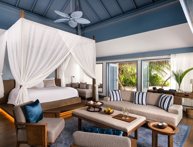 Размещение на курорте происходит в просторных береговых и водных виллах с минимальным размером 220кв.м. Все выполнены из природных материалов и с современным комфортом. Каждая вилла оснащена персональным бассейном и террасой с шикарным видом на Индийский океан или белоснежный пляж.