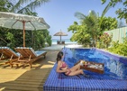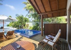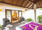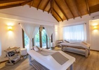 В отеле несколько категорий размещения, все виллы выполнены из природных материалов и удачно вписываются в насыщенную растительность острова и белоснежные пляжи. Все категории бунгало – на воде или на берегу, располагают собственной террасой для отдыха с видом на сад, либо на побережье. Часть вилл оснащена джакузи и собственным бассейном.