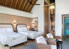 Размещение предусмотрено в 121 вилле с частным бассейном, джакузи, террасой для отдыха и потрясающим видом на Индийский океан. Кроме классических вилл на берегу и на воде, отель предлагает на выбор проживание в резиденции на отдельном острове с собственной инфраструктурой и пляжем или в уединенных водных бунгало, до которых можно добраться на лодках Дхони.
