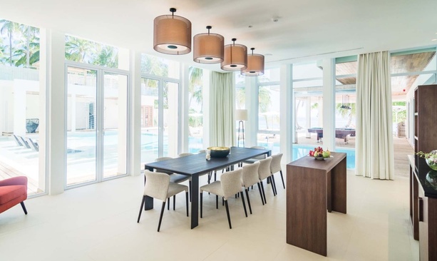 Резиденция с четырьмя люксами размера "king-size" и четырьмя комнатами с раздельными кроватями. Двухуровневые крытая и открытая жилые зоны располагают оборудованными площадками для барбекю и двумя 11-метровыми бассейнами с прямым выходом на пляж и в лагуну. Максимальная вместимость 20 гостей