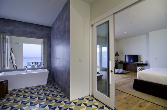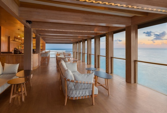 Виллы на сваях над водой расположены вдоль кораллового рифа, с видом на океан и прямым выходом на риф. Состоят из спальни, гостиной не изолированные, ванной комнаты, террасы с собственным бассейном и спуском в океан.