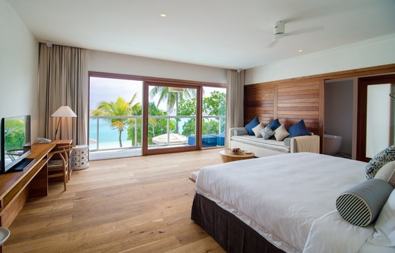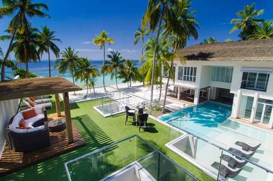 Виллы расположены на сваях над водой, с прямым выходом в лагуну. Состоят из спальни, гостиной не изолированные , ванной комнаты, террасы с собственным бассейном и спуском в океан