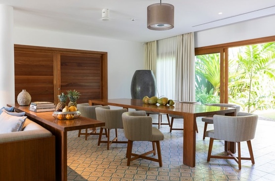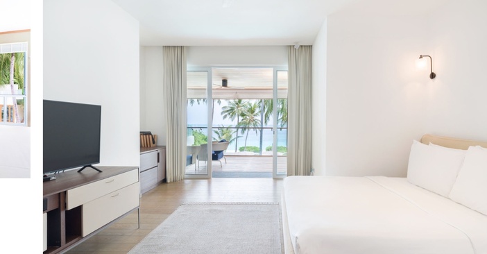 Виллы полностью приватные и расположены на берегу с прямым выходом на пляж, состоят из спальни с просторной зоной отдыха, ванной комнаты и террасы с обеденной зоной, которая пе-реходит во внутренний двор с собственным бассейном, шезлонгами и гамаком.