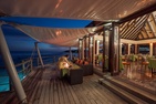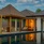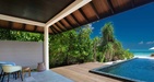 Sunset water villa with pool : терраса с открытым персональным бассейном (20 кв. м) и спуском в воду, спальня с кроватью queen-size, гардеробная, ванная комната с ванной и душем. Расположены на сваях над водой.