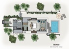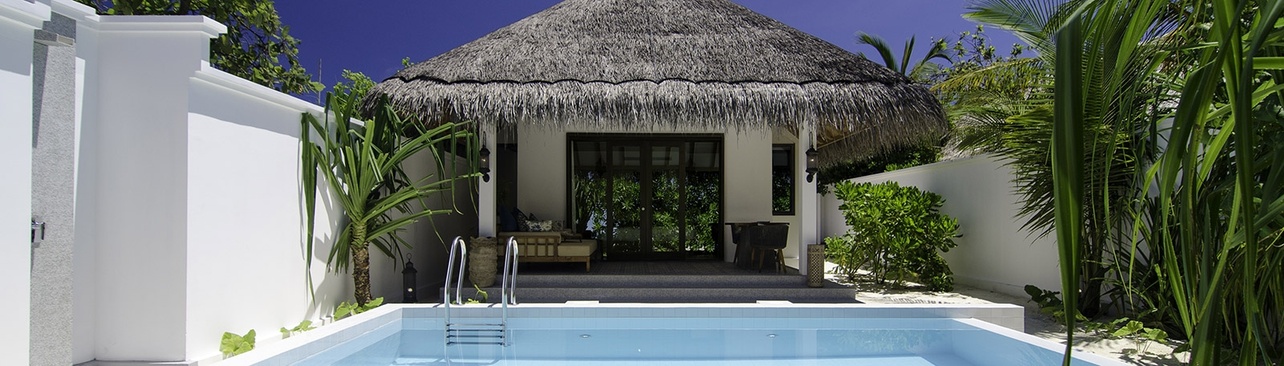 (530 кв. м): частный сад с открытым персональным бассейном с пресной водой (10 кв. м), терраса с обеденной зоной на открытом воздухе (стол на 6 персон), гостиная с обеденной зоной (стол на 6 персон), 2 спальни (каждая – с кроватью king-size), 2 ванные комнаты (каждая – с ванной, душевой кабиной и душем на открытом воздухе). Расположены рядом с пляжем среди садов.