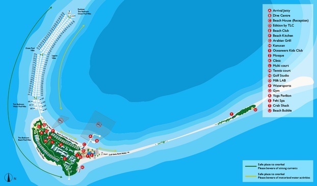 Гости могут насладиться пребыванием на частном острове SO/ Maldives или воспользоваться уже полюбившимися удобствами в The Marina @ CROSSROADS, где представлены кафе, рестораны, пляжный клуб, бутики, спа-салон, морской исследовательский центр и пристань для яхт.
