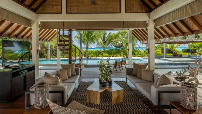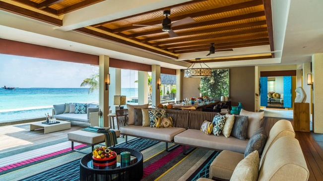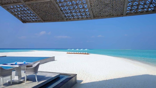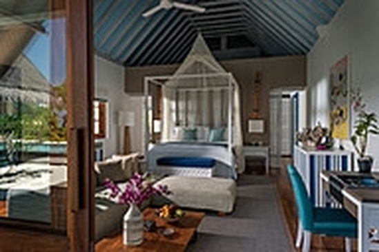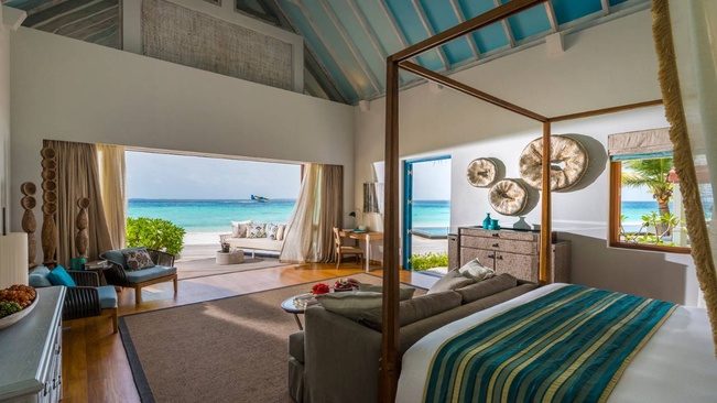 Бирюзовые двери ведут в традиционную мальдивскую виллу с коралловыми стенами. Просторные Beach Villa with Pool имеют спальню, гостиную зону, гардеробную и роскошную ванную с душем под открытым небом. Особенностью этой категории вилл является большой 12-метровый бассейн, прилегающий к оригинальной гостиной с песчаным полом и обеденной зоне. С отдельной террасы на возвышении, где установлены лежаки, открываются шикарные виды океана. В открытом пространстве виллы установлены также традиционные мальдивские качели и кушетки для отдыха. К отгороженному тропической растительностью пляжу, находящемуся всего в нескольких шагах, ведет тенистая дорожка.
