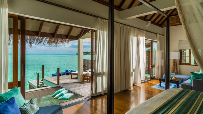 Расположенные на сваях прямо над водой виллы Water Villas со спальней, гостиной, гардеробной и ванной с душем под открытым небом предлагают виды на восход или на закат. На открытой террасе размещаются столовая и лаунж-зона и 11 метровый бассейн , а на площадке на уровне моря – дополнительный душ. Винтовая лестница ведет на открытую веранду, с которой можно любоваться океаном и окружающей природой.