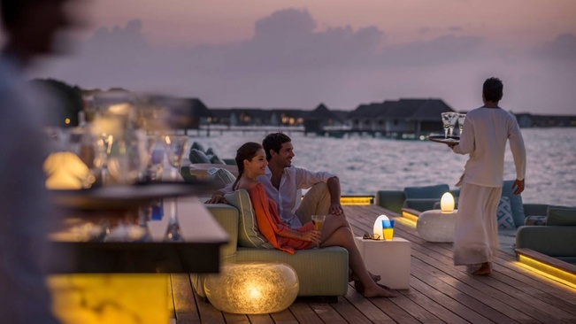 Seabar предлагает концепцию напитков над водой для перехода на следующий уровень отдыха , предлагая напитки с вкусом рома, вдохновленные садовыми ароматами, на палубе из сеток, расположенных над водой в лагуне и обставленной низкой мебелью и гамаками.