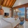 Ocean villa horizon : терраса с джакузи, обеденной зоной на открытом воздухе и спуском в воду, спальня с кроватью king-size, ванная комната с ванной и душевой кабиной с функцией «тропический дождь». Расположены на сваях над водой.