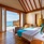 Ocean villa infinity : терраса с обеденной зоной на открытом воздухе и спуском в воду, спальня с кроватью king-size, ванная комната с ванной и душевой кабиной с функцией «тропический дождь». Расположены на сваях над водой.