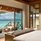 терраса с открытым/закрытым персональным бассейном и джакузи, гостиная, столовая (стол на 8 персон), кладовая, 2 спальни, гардеробная, 2 ванные комнаты (каждая с ванной и душевой кабиной). Номера имеют открытую планировку: спальная и ванная зоны не разделены. Расположены на сваях над водой. Вид на океан. Услуги персонального батлера.