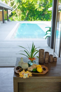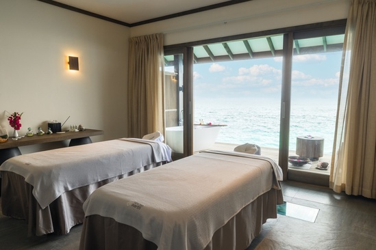 водные виллы с частным бассейном. Состоят из спальни с кроватью king-size, рабочим столом, шкафом; ванной комнаты с двумя раковинами и душем; зоны отдыха с лежаками. Ма Возможно размещение гостей только старше 18 лет.