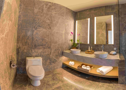 сейф, кондиционер, ванная комната с двойной раковиной и душем, открытая ванная комната