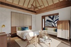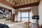 Двухэтажные пляжные виллы расположены на пляже в западной части острова. На первом этаже находятся гостиная, гардеробная, ванная комната с ванной, душем, двумя раковинами и душем на открытом воздухе. На веранде – зона отдыха, обеденная зона и собственный бассейн площадью 18 кв.м. На втором этаже находится просторная спальня с кроватью king size, вторая ванная комната и балкон с диванчиком и креслами, откуда открывается прекрасный вид на океан.