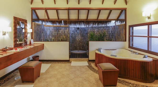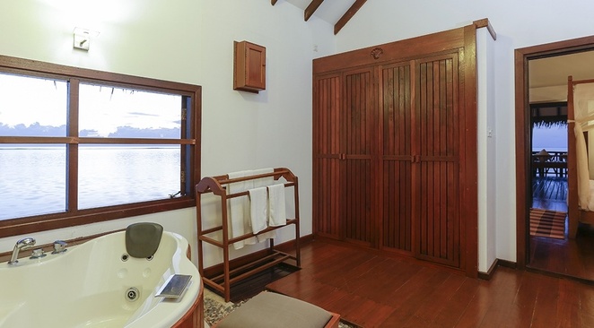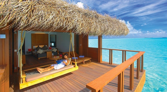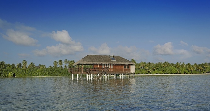 Water Villa– отдельно стоящие водные виллы. Состоят из спальни с кроватью king-size или двумя кроватями twin, ванной комнаты с ванной и душем, террасы с лежаками, качелями и спуском в воду