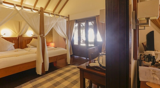 Beach Villa- отдельно стоящие береговые виллы. Состоят из спальни с кроватью king size или 2 раздельными кроватями, ванной комнаты с открытым душем, террасы с качелями, лежаками и выходом на пляж. Максимальное размещение - 3 взрослых или 2 взрослых и 1 ребенок.