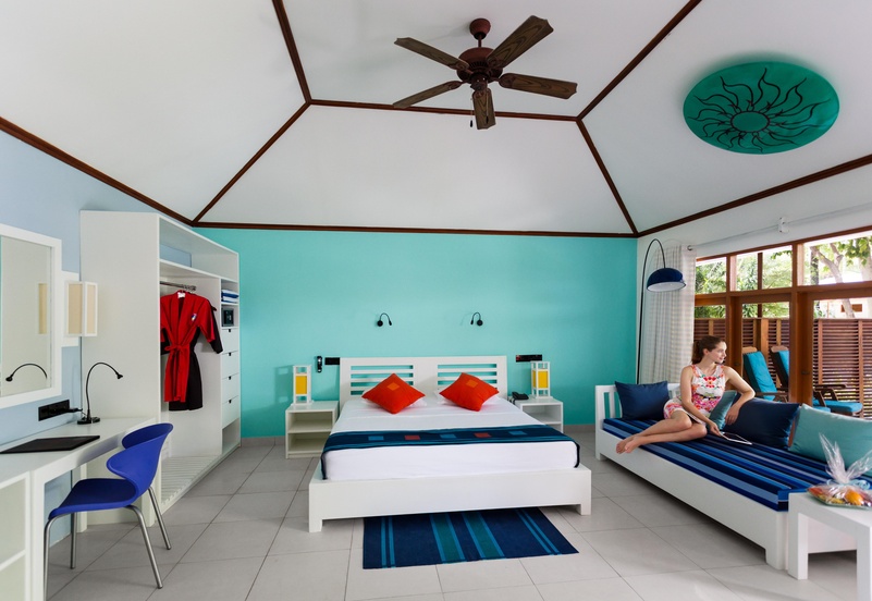 Family Villa (Ex. Two Bedroom Villa) - Расположенные вдоль береговой линии и недалеко от всех самых активных объектов острова виллы с двумя спальнями. На вилле: главная спальня с кроватью king и ванной комнатой открытого типа с душем, вторая спальня с кроватями twin и ванной комнатой закрытого типа с душем, терраса. Максимальное размещение 4 взрослых /2 взрослых+3 детей.