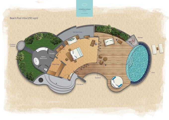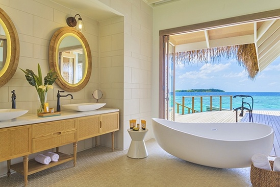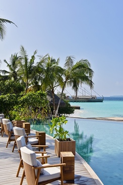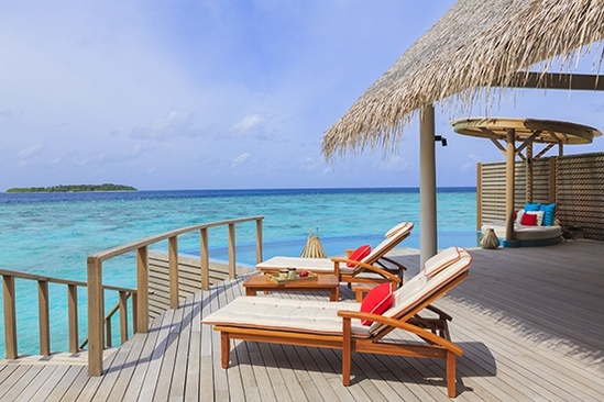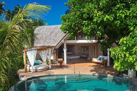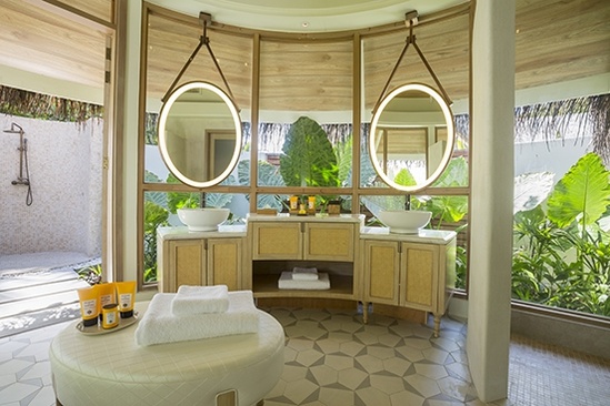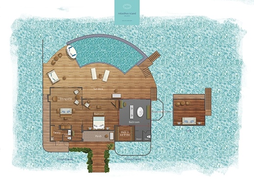 водные виллы с бассейном (42 кв.м), просторной террасой. Состоят из спальни с кроватью king-size, ванной комнаты с ванной и "ливневым" душем, вторым душем на открытом воздухе, гардеробной, большой террасы со спуском в воду, бассейном, обеденной зоной и лаунжем с диваном-качелями. Максимальное размещение - 3 взрослых или 2 взрослых и 1 ребенок.