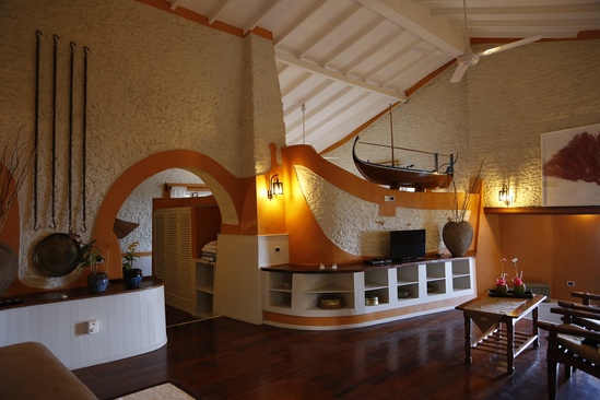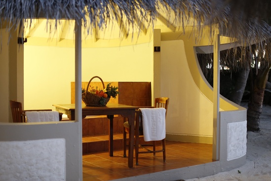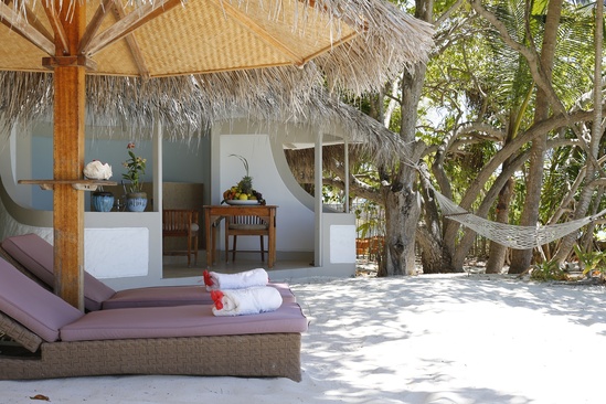 отдельно стоящие береговые бунгало, состоящие из 2-х спален с отдельными ванными комнатами и гостиной, с качелями и джакузи, вид на «домашний» риф, корзина фруктов в номер каждый день