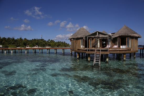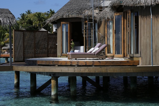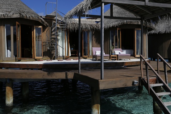 водные бунгало, состоящие из двух спален и гостиной, с трехуровневой террасой
