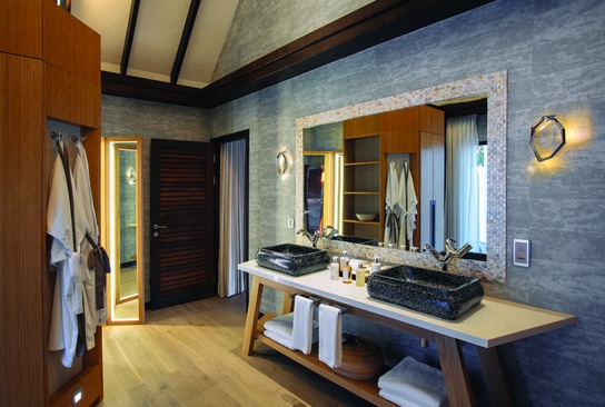 1 The OZEN Residence (430 кв.м) роскошный люкс, приватно расположенный в самом конце пирса на сваях над водой, из которого открывается панорамный вид на безграничный океан. На вилле 3 спальни (каждая со своей ванной комнатой), персональный тренажерный зал, комната для прислуги с отдельным входом, мини-кухня, обеденный павильон на открытом воздухе, просторная терраса с собственным бассейном (35 кв.м).