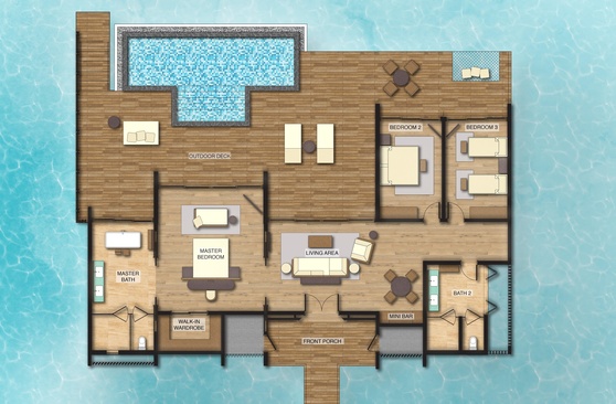 3 BEDROOM OVERWATER ROYAL RESIDENCE (EX PRESIDENTIAL OVERWATER VILLA 3 BEDROOMS - POOL)
