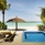Бунгало на пляже с собственным частным бассейном в саду располагает двуспальной кроватью, диваном-кроватью, террасой с шезлонгами и креслами. Из бунгало открывается прекрасный вид на море и есть все необходимые удобства. Требуется предварительное бронирование.