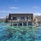 терраса с открытым персональным бассейном (15 кв. м), спальня с гостиной зоной, гардеробная, ванная комната. Расположены на сваях над водой. Вид на океан.